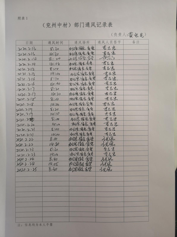 4、上班期間(除在自己宿舍外)檢查職工口罩佩戴情況,并為上班職工測量體溫,上班前和下班后各1次,并做好登記。