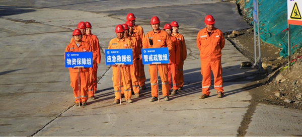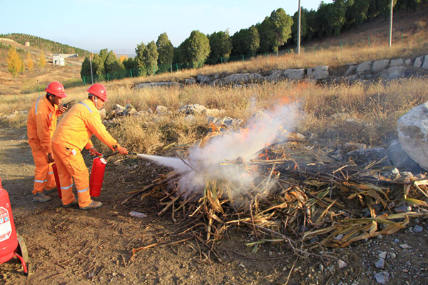 此次火災演練的主要內容是模擬礦區發生火災后,員工熟悉消防器材的使用及如何撲滅初起火災。演練現場,參加演練的人員接到演練開始的通知后,迅速而有序的展開火災救援行動,滅火過程中火勢越來越大,調集灑水車最終將火勢撲滅。