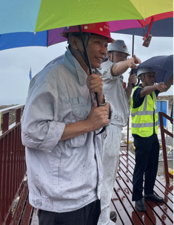 上午九點,專家組冒著暴雨,進行實地查看,重點對礦山開采區的邊坡綠化、開采平臺、運礦道路、噴淋等環保設施、以及工作區,生活區進行現場審查,隨后對內業資料進行審查,最終以953分成功通過省級綠色礦山評審。