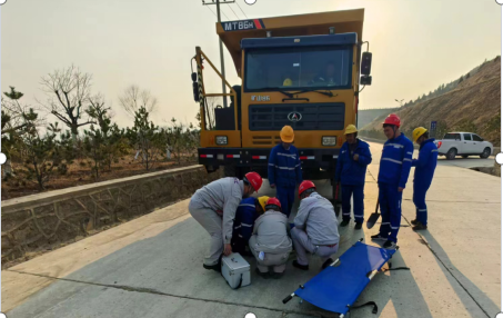 隱患排查后分公司經理劉國榮組織開展礦山運輸車車輛事故應急演練。提升全員應急處置能力,在事故發生后能夠快速有序的展開救援減少事故損失。
