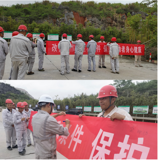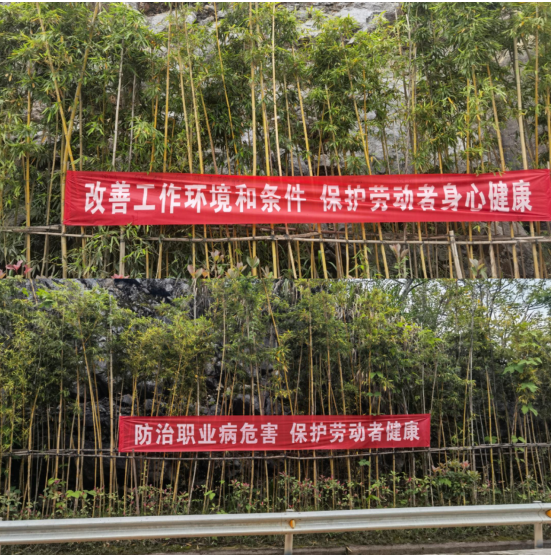 為使宣傳活動更深入人心,在礦山道路兩旁懸掛宣傳橫幅,時刻提醒各崗位職工的健康防護意識。
