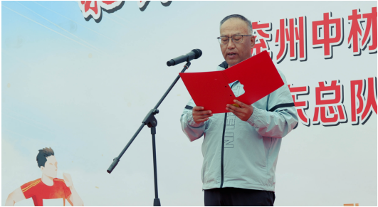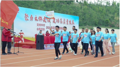 兗州中材黨委委員、副總經理劉占中宣布:兗州中材、山東總隊“聚力文體建設 建功高質量發展”迎五一趣味運動會正式開幕!